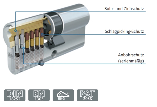 - Bohr- und Ziehschutz: Robuste Bauteile schützen den Zylinder vor gewaltsamem Öffnen.