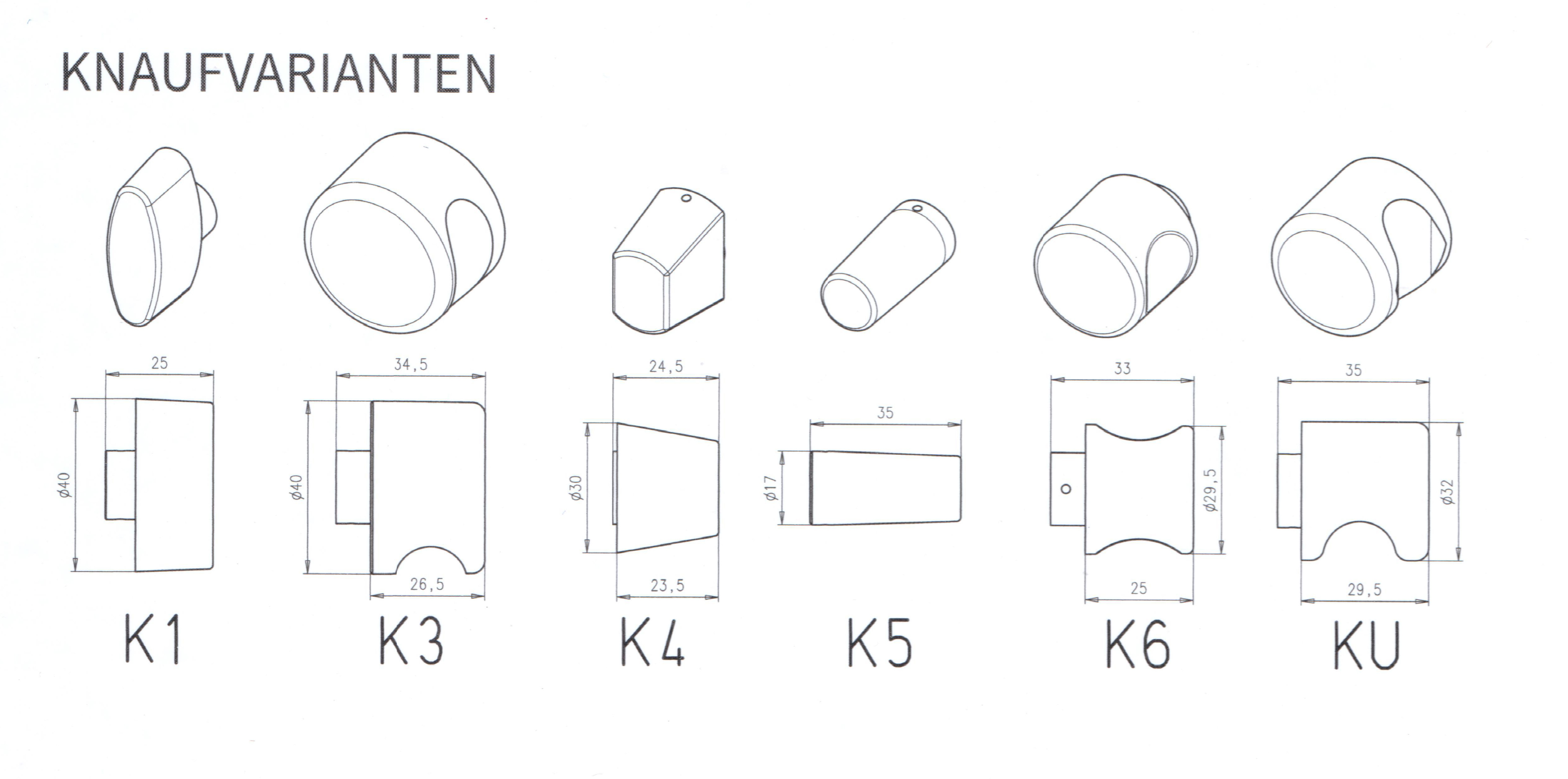 Maße: Basismaß 30/30 mm (Außen/Knaufseite), Verlängerung in 5-mm-Schritten möglich.