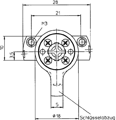 6-stiftige Kreuzprofilsicherung. Schlüssellänge 70 mm (A).