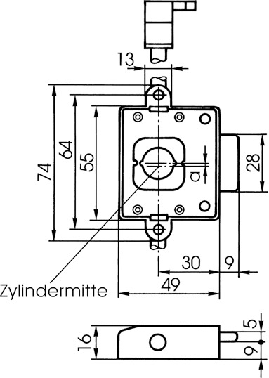 Lieferumfang: 1 Schloss, 2 Fanghaken, 2 Schließbolzen, 1 Profilstange (bei ABM=200/250).