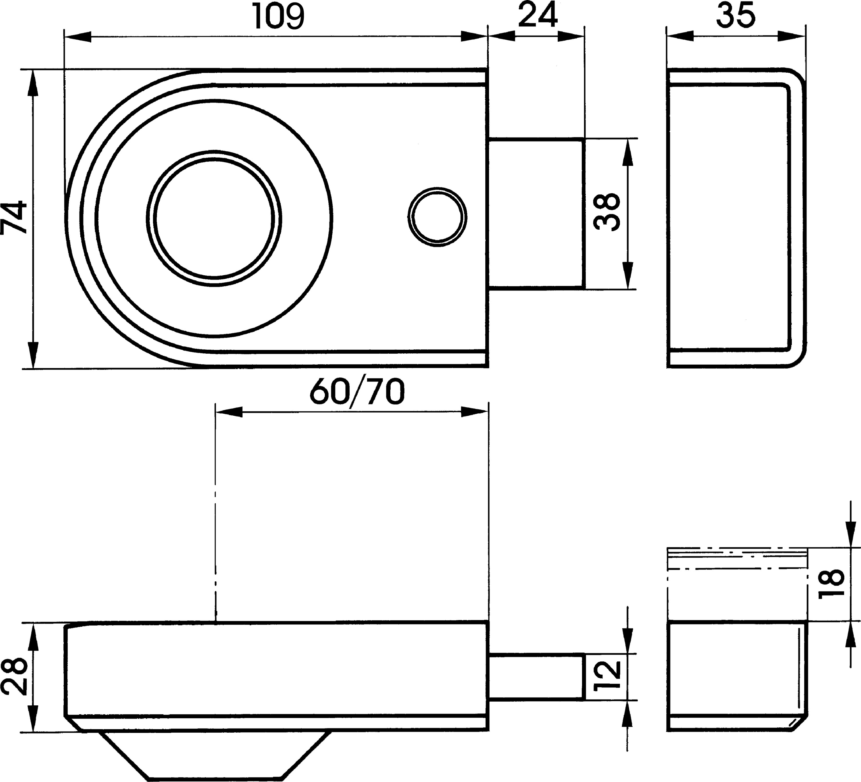 IKON 9133 Kastenriegelschloss ohne Zylinder (Innen/Außen)
